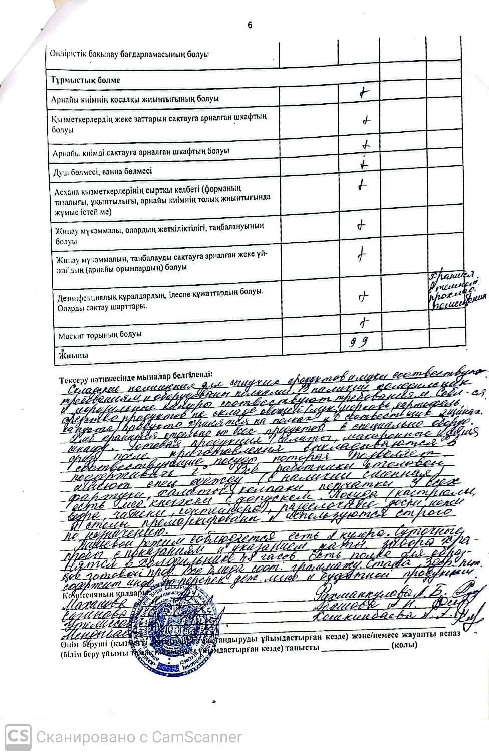 » Тамақтану сапасына мониторинг жүргізу актісі