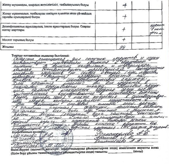 Қабылдау бөлімі :