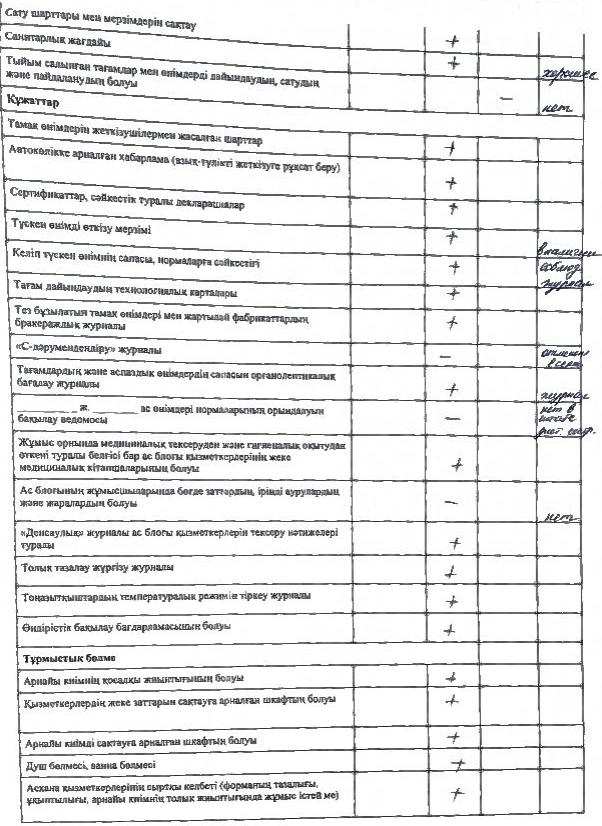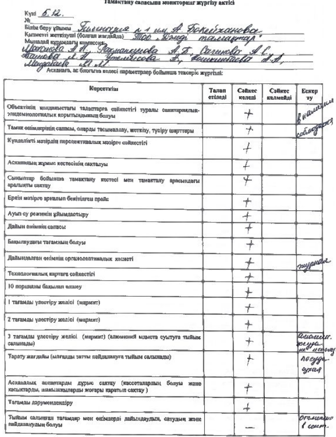 » Тамақтану сапасына мониторинг жүргізу актісі
