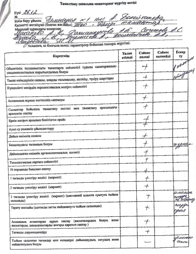 » Тамақтандыру сапасына мониторинг жүргізу актісі